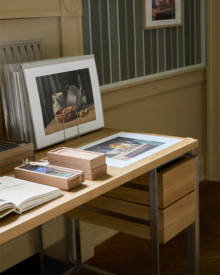 Für die Neugestaltung des Museumsshops der Hirschsprung Collection wurden das Japanese Cabinet und das Foldable Floor Shelf von Kristina Dam Studio sorgfältig ausgewählt, um ein funktionales und zugleich raffiniertes Präsentationssystem zu schaffen. Durch die Verbindung zeitloser Materialien mit einer minimalistischen Ästhetik ergänzen die Möbel die kuratierte Atmosphäre des Museums und lassen die Produkte in den Mittelpunkt rücken.