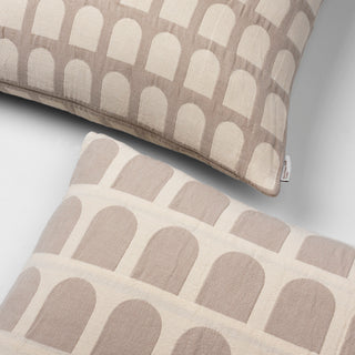 Kristina Dam Studio Arch Bedspread Two gray and white patterned towels stacked on a white background