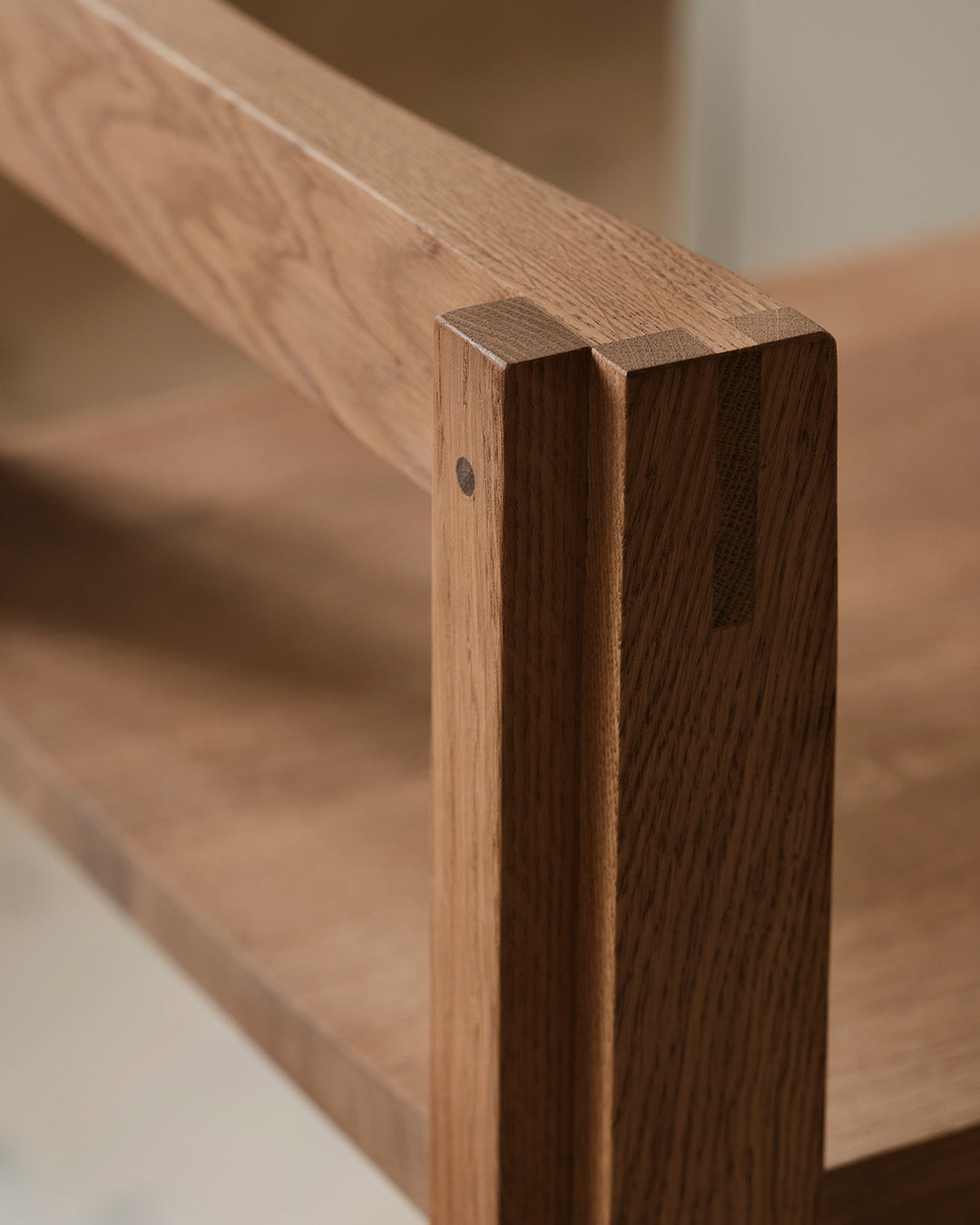 Die hohe Version eignet sich ideal für klassische Bartresen und andere barhohe Umgebungen. Der Outline Barhocker reiht sich nahtlos in den Outline Chair und den Outline Desk ein und bildet die lang ersehnte Ergänzung dieser beliebten Kollektion, die den architektonischen, skandinavischen Stil zelebriert. Mit seinem minimalistischen und luftigen Ausdruck lässt sich der Barhocker mühelos in jede Inneneinrichtung integrieren. Das Zusammenspiel der markanten Holzrechtecke schafft jene visuelle Harmonie, die für Kristina Dam Studios Philosophie des „skulpturalen Minimalismus“ entscheidend ist. Gefertigt aus lackierter Eiche mit Walnussdetails sowie einer Fußstütze aus gebürstetem Aluminium – ein langlebiges, zeitloses Design.