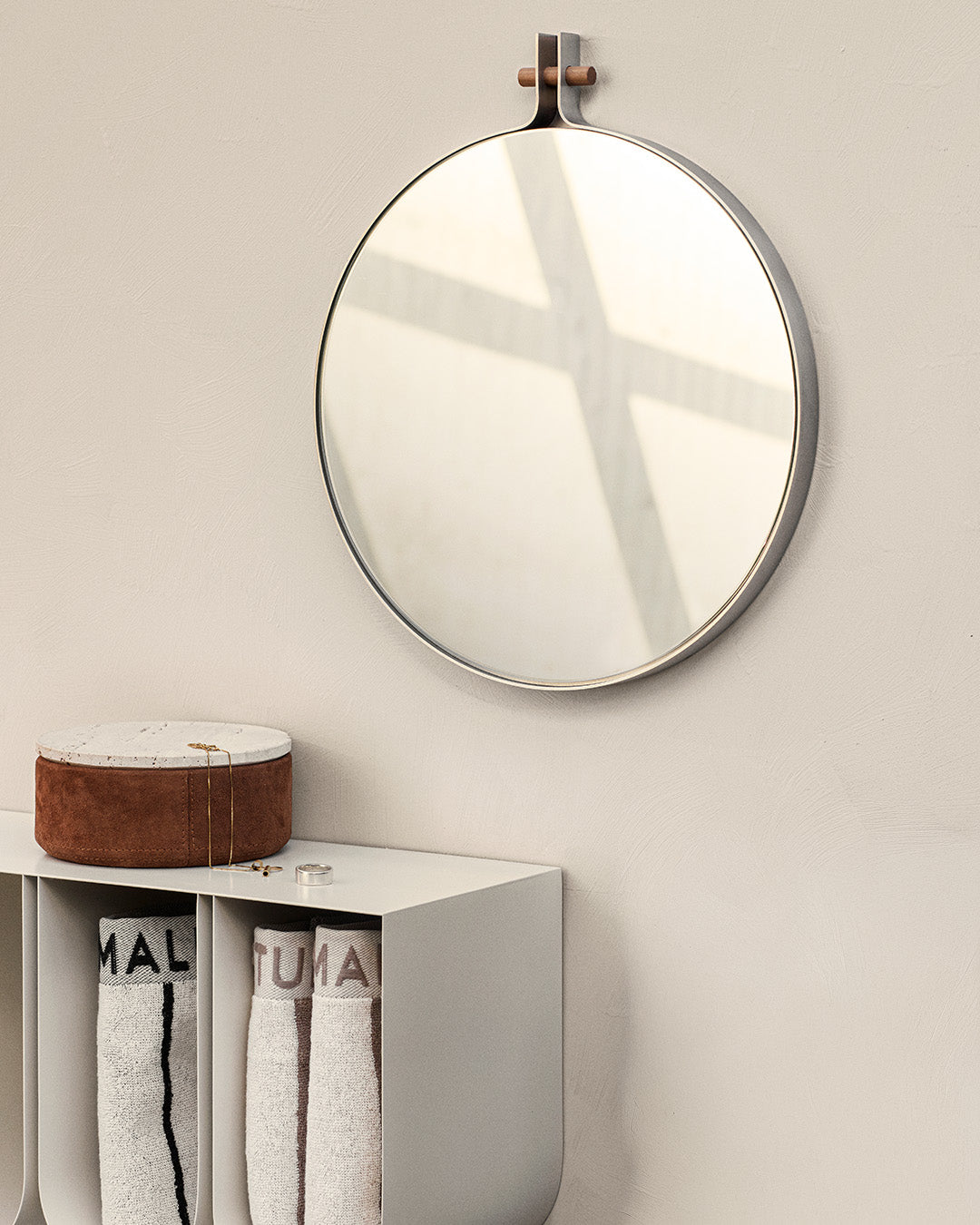 Dowel Spiegel verkörpert Minimalismus in seiner klarsten Form – eine Hommage an die Schönheit der Einfachheit und die Stärke ehrlichen Designs. Der Spiegel ist in schlanken Stahl gefasst und wird durch einen massiven Walnuss-Dübel im Zentrum akzentuiert. Eine stilvolle Wahl für Schlafzimmer, Bad, Eingangsbereich oder jeden Raum, der Ruhe und Reflexion einlädt.