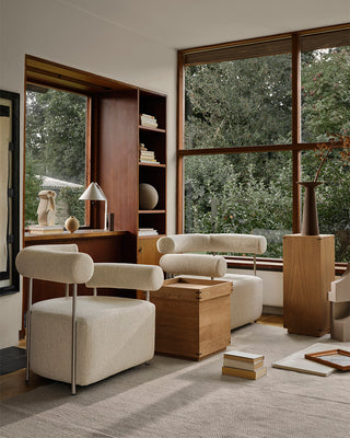 Das Wohnzimmer ist das Herz des Zuhauses – ein Ort der Entspannung und des Zusammenseins, an dem Komfort auf Stil trifft. Gestalten Sie einen ruhigen und zugleich anspruchsvollen Raum mit den Designprinzipien des Sculptural Minimalism von Kristina Dam Studio. Wählen Sie einen skulpturalen Sessel in Kombination mit eleganten, funktionalen Loungetischen. Integrieren Sie weiche Textilien, skulpturale Vasen und Kerzenhalter, um eine warme, einladende Atmosphäre zu schaffen, und ergänzen Sie den Raum mit ausgewählten Kunstwerken, um ein harmonisches Gleichgewicht zwischen Komfort und Ästhetik zu erreichen.