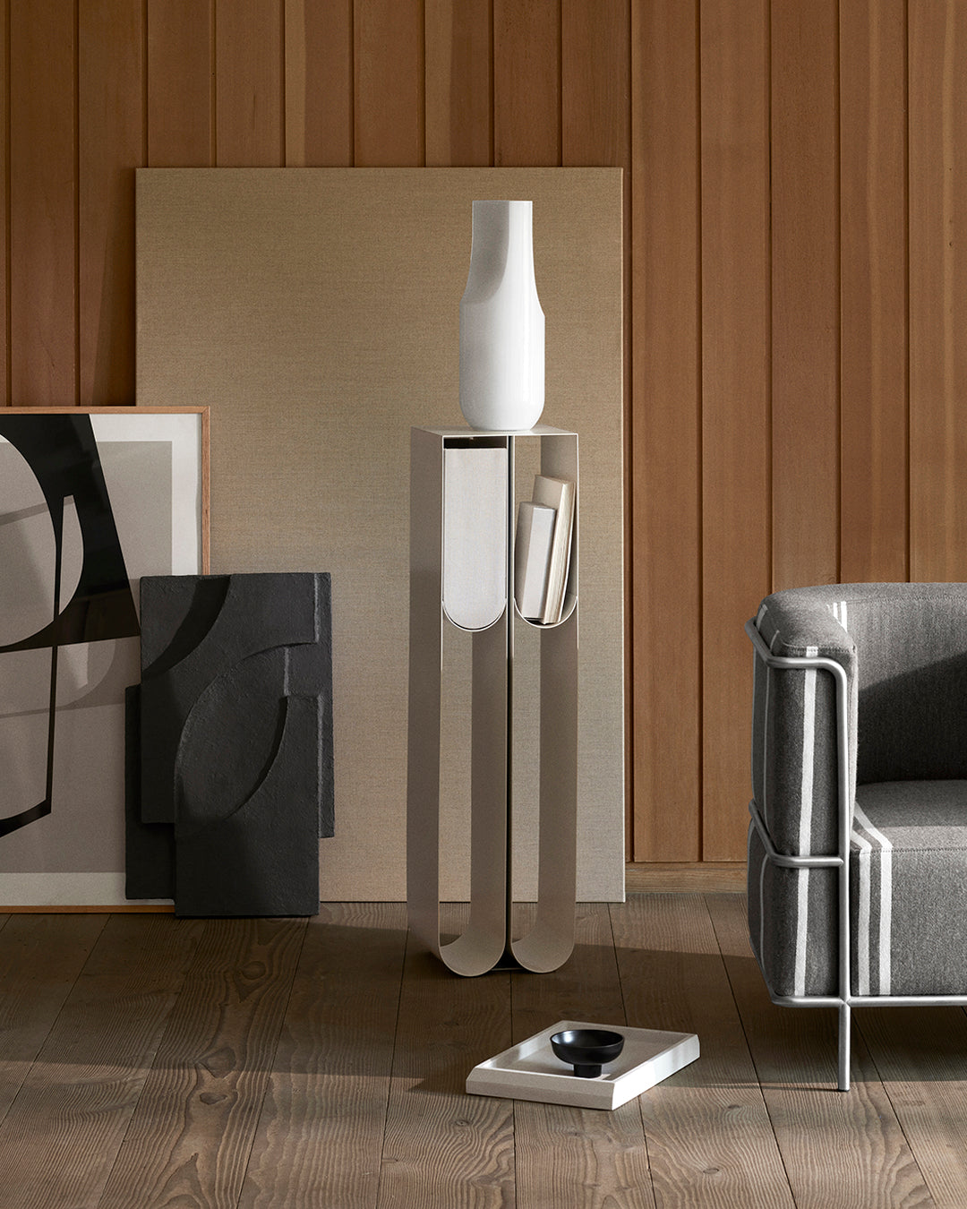 Nichts setzt ein geschätztes Kunstwerk besser in Szene als ein freistehender Sockel. Der Curved Sockel besitzt einen grafischen, minimalistischen Ausdruck, der die ausgestellten Objekte unterstreicht und gleichzeitig dezent seinen eigenen Platz behauptet. Er besteht aus pulverbeschichtetem Metall und verfügt über vier Stauraumrahmen, in die die separat erhältlichen Curved Boxes perfekt hineinpassen. Der Curved Sockel ist Teil der Curved-Serie, einer Kollektion skulpturaler, zeitloser Signature-Designs, die der Schlichtheit Tribut zollen.